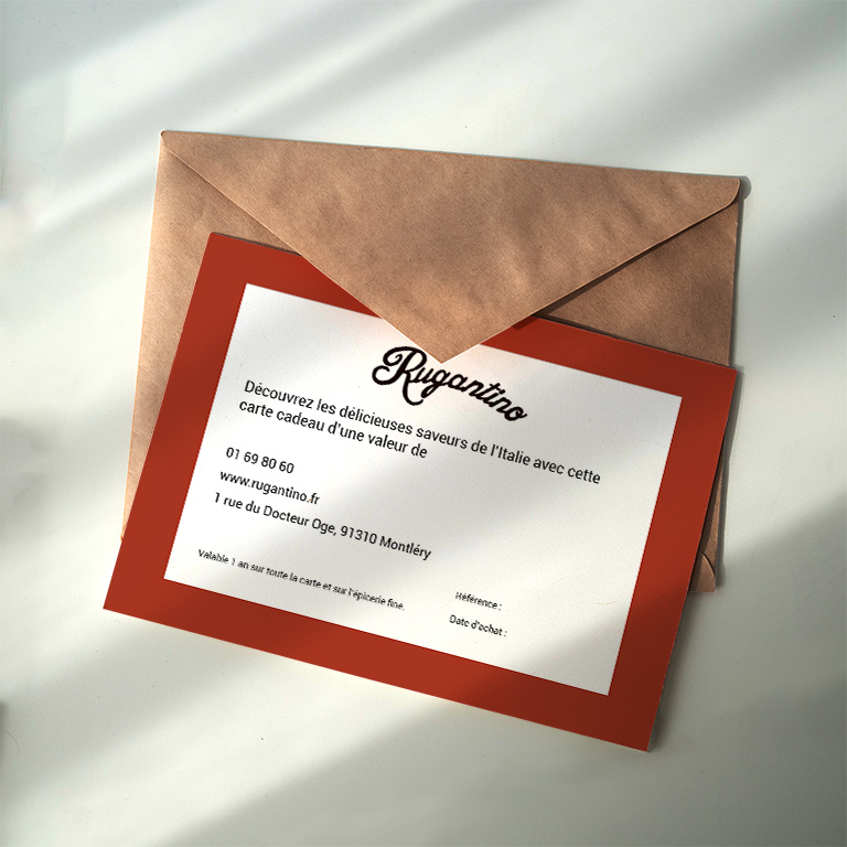 Offrez un délicieux repas aux saveurs de l’Italie ! Choisissez le montant que vous souhaitez offrir. Votre carte cadeau vous sera envoyée par mail sous 48h ouvrables